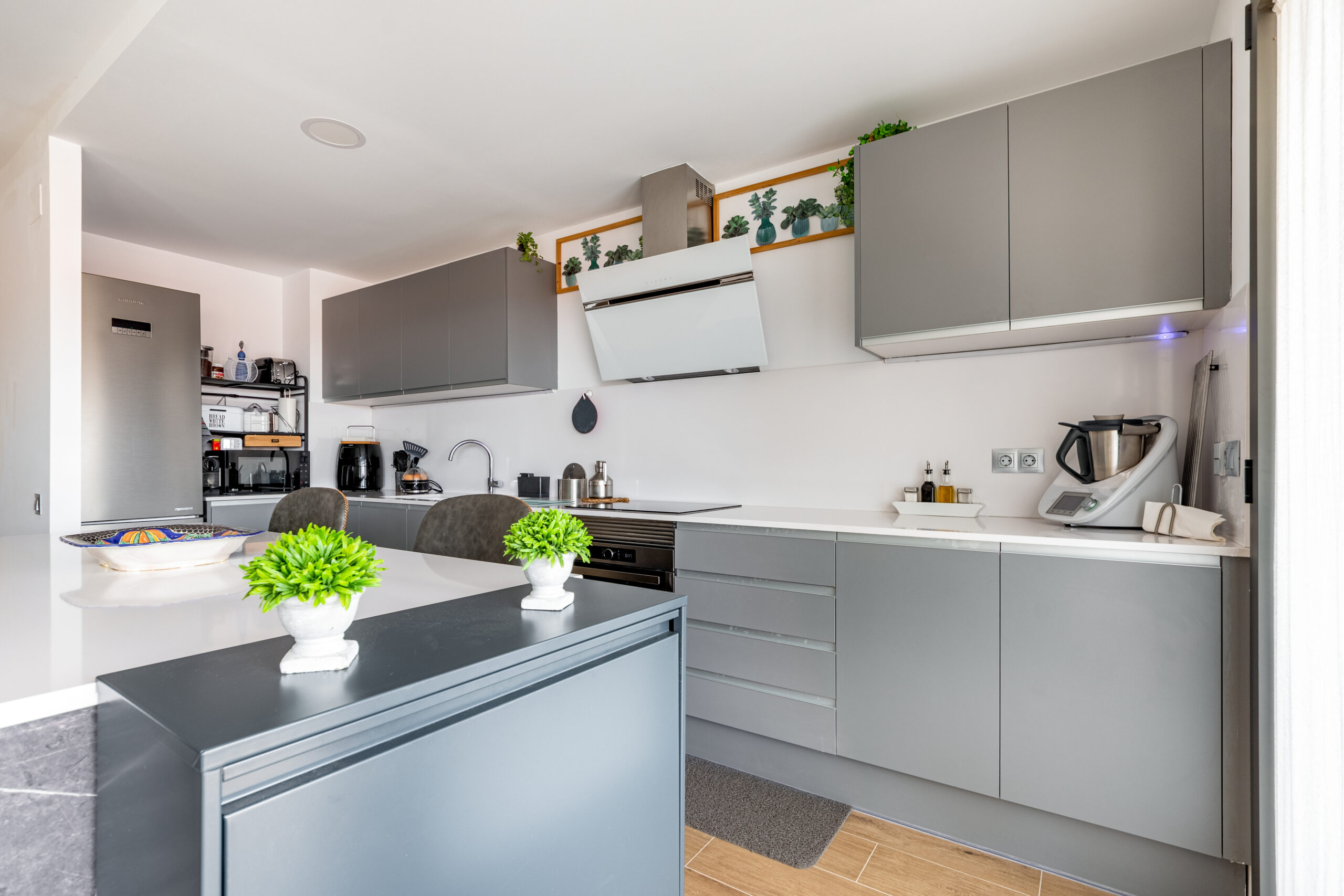 Te acompañamos en cada etapa de su proyecto, desde la selección de los azulejos para el suelo y las paredes, hasta la elección de colores, acabados, mobiliario de cocina, encimeras y electrodomésticos. Diseñamos cocinas cómodas, elegantes y funcionales, creando un espacio que transmita equilibrio y armonía. Nos adaptamos a sus necesidades, su estilo y el espacio disponible para ofrecerle una cocina personalizada y única.